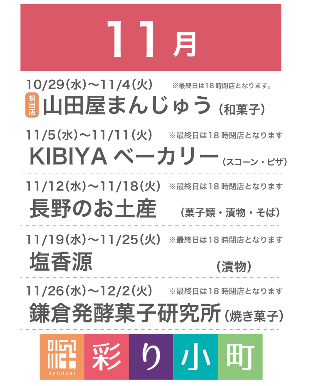 【旬粋彩り小町】11月の催事スケジュール- 2025-11-01~2025-11-30