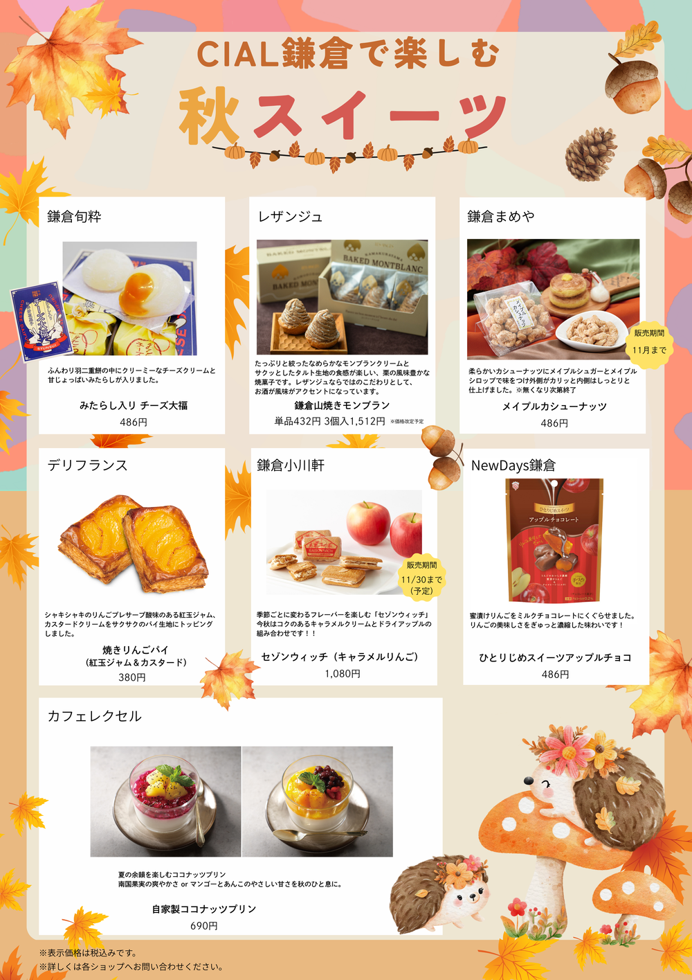 秋の鎌倉散策にぴったりな、季節限定スイーツがCIAL鎌倉に勢ぞろい。