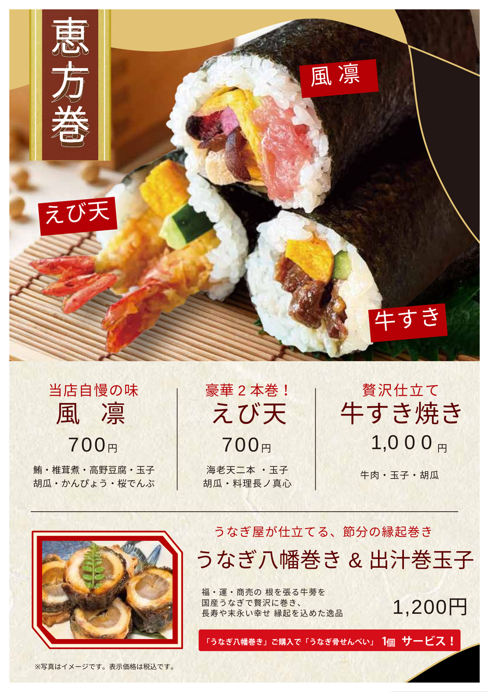2/3(火)限定!【鎌倉こまち市場 風凛 】恵方巻のご案内