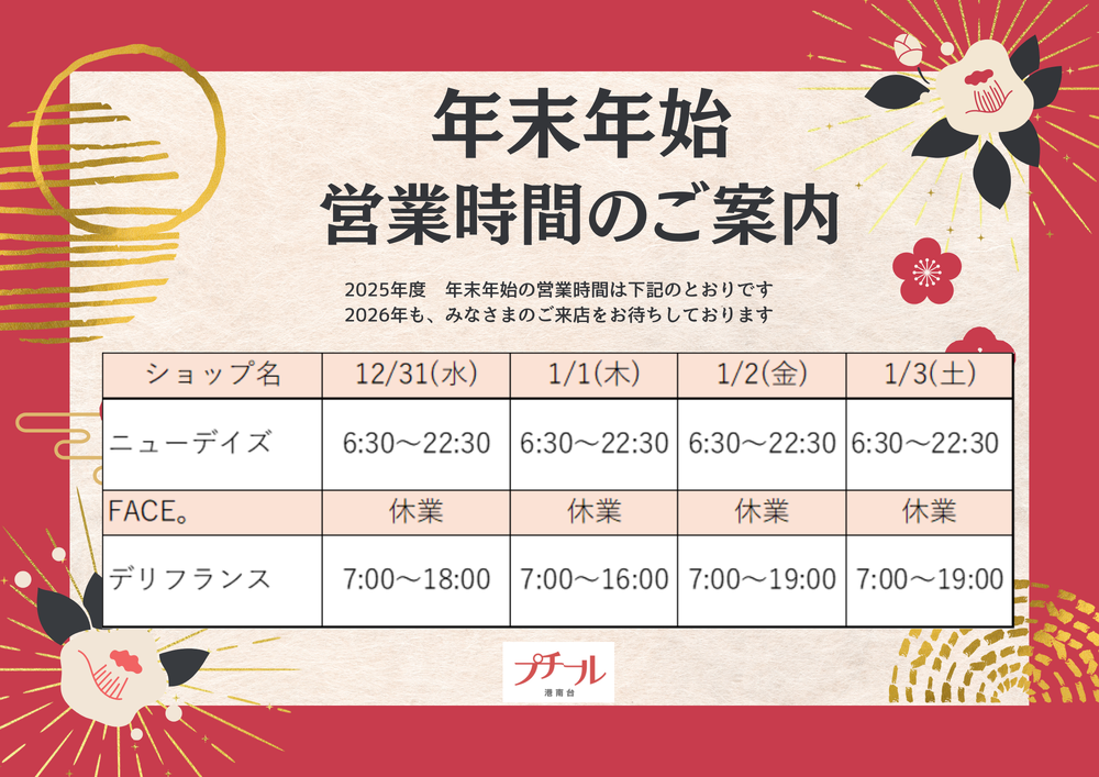 NEWS & EVENT ニュース&イベント HOME ニュース&イベント すべて ニュース イベント [デリフランス] 12月の新商品のご案内 2025-12-01~2025-12-31 年末年始営業時間のお知らせ - MORE [デリフランス] 12月の新商品のご案内 2025-12-01~2025-12-31 年末年始営業時間のお知らせ - MORE MORE