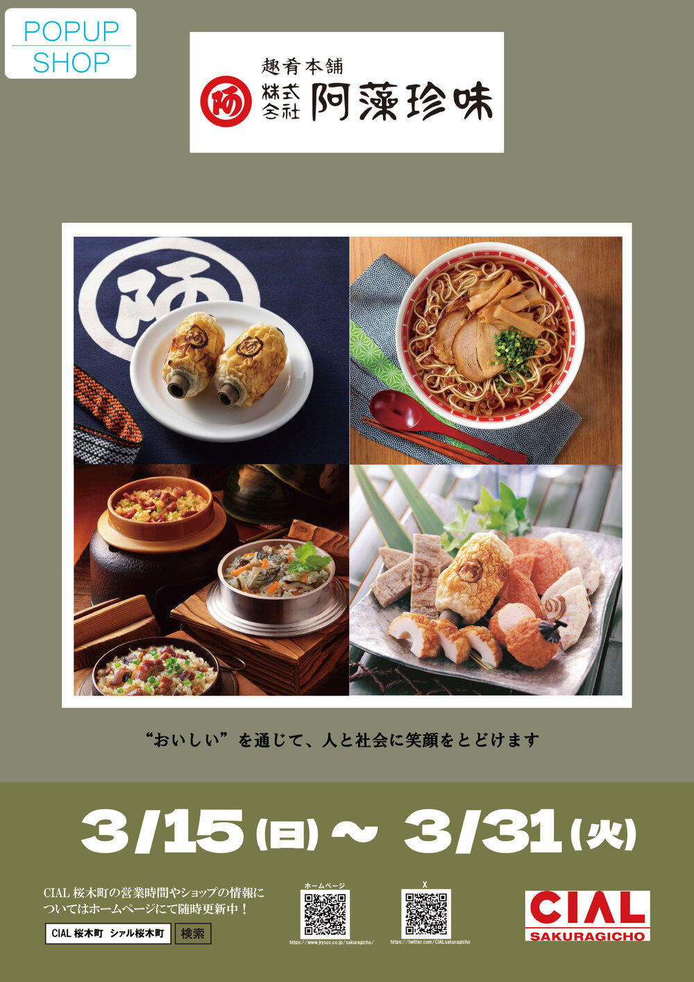 3/15(日)~3/31(火)の期間限定で紅葉坂ギャラリー内に【阿藻珍味】がオープン致しました。