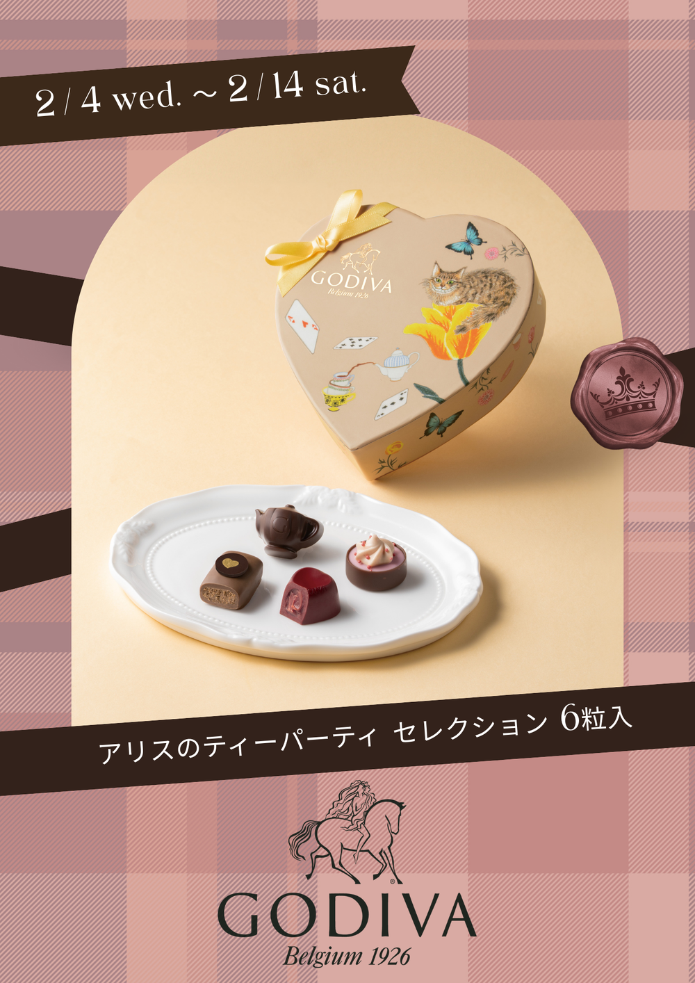 「不思議の国のアリス」の印象的なシーン「ティーパーティ」をイメージしたチョコレートを楽しめる、キュートな「アリスのティーパーティ コレクション」。 ティーパーティを彩る紅茶やカップケーキなどをイメージした限定チョコレートを、物語のシンボルのトランプやティーセット、いたずら好きなチェシャ猫を描いたハート形のパッケージに詰め合わせました。