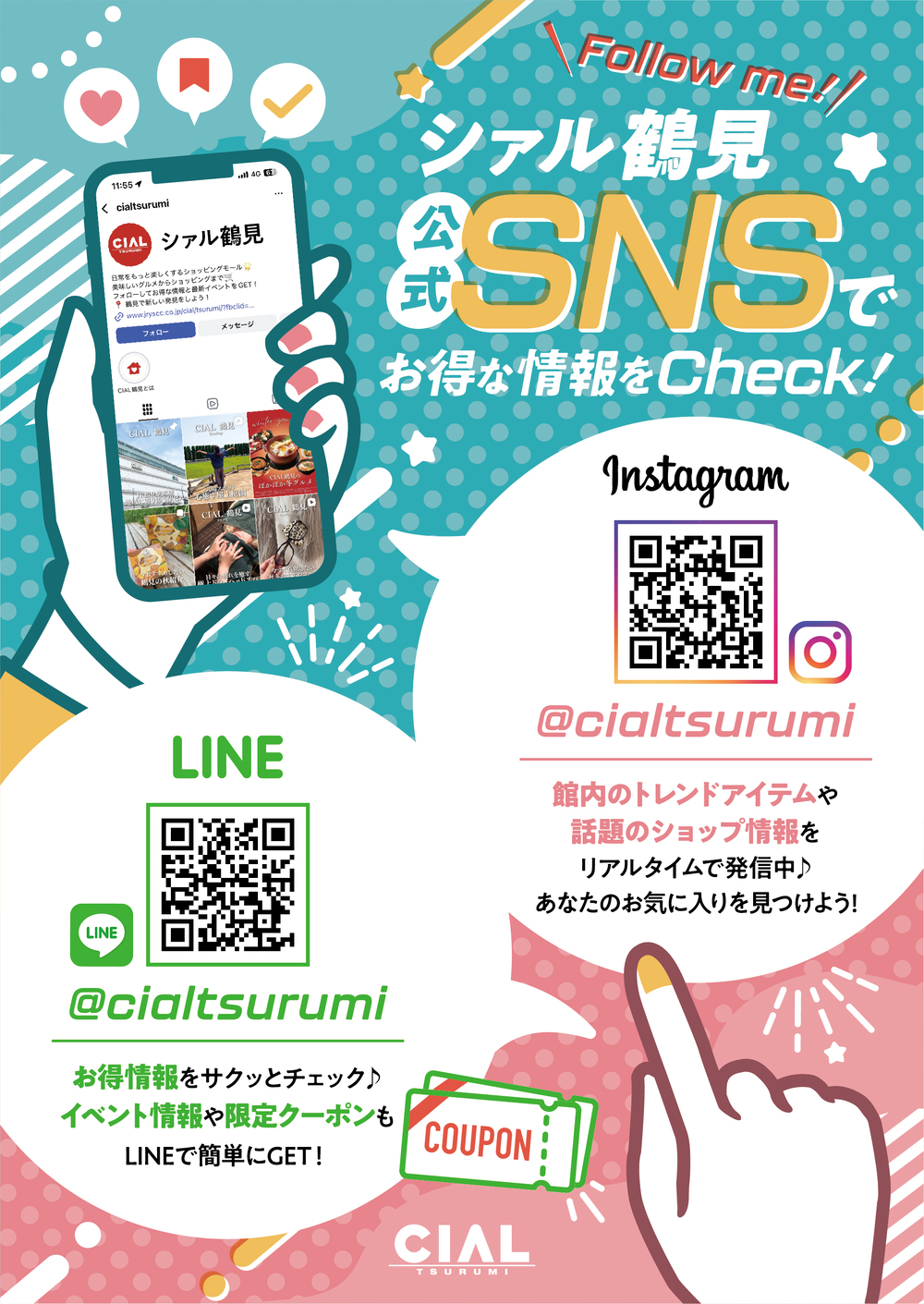 NEWS & EVENT ニュース&イベント HOME ニュース&イベント \Follow me/シァル鶴見 公式SNSでお得な情報をCheck! 2025.12.14 開催期間:- \Follow me/シァル鶴見 公式SNSでお得な情報をCheck! シァル鶴見の「今」がわかる、公式SNSをご紹介! 館内の注目アイテムや、おすすめショップ情報等をタイムリーに発信中。 ◆LINE お得な情報をサクッとチェック♪ イベント情報や限定クーポンもLINEで簡単にGET! ID:@cialtsurumi お友だち追加はこちらから! ◆Instagram 館内のトレンドアイテムや話題のショップ情報をリアルタイムで発信中♪ あなたのお気に入りを見つけよう! ID:@cialtsurumi フォローはこちらから! PDFはこちら 前の記事へ 次の記事へ 一覧に戻る