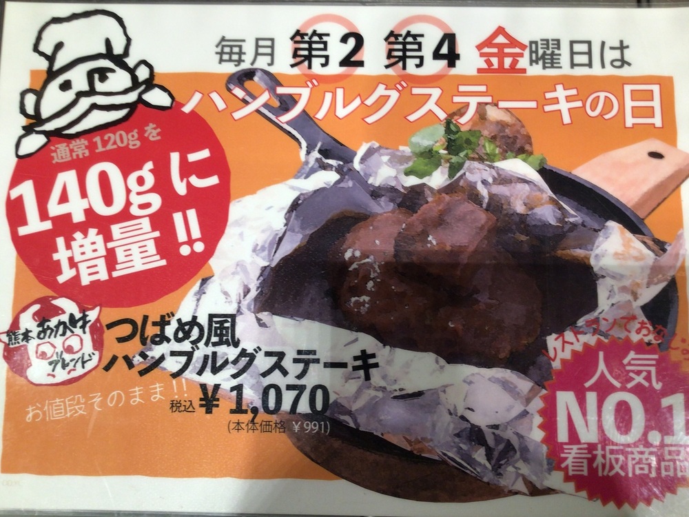 つばめグリルDELI 毎月第2第4金曜日はハンブルグステーキの日