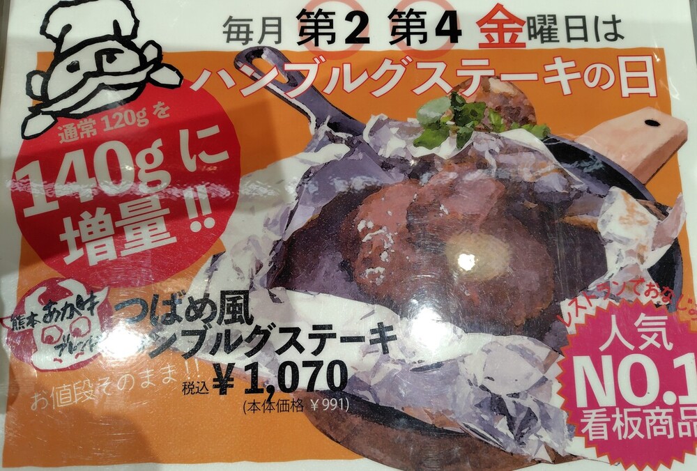 つばめグリルDELI 毎月第2第4金曜日は、ハンブルグステーキの日