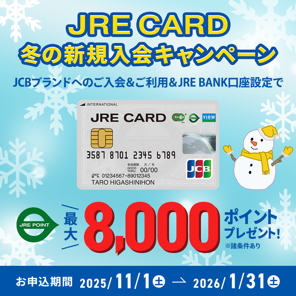 HOMEニュース&イベントJRE CARD 冬の新規入会キャンペーン NEWS & EVENT 2025.11.01 開催期間:2025.11.01~2026.01.31 JRE CARD 冬の新規入会キャンペーン 詳しくは、以下ご確認ください! JRE CARD 冬の新規入会キャンペーン 前の記事へ 次の記事へ 一覧に戻る