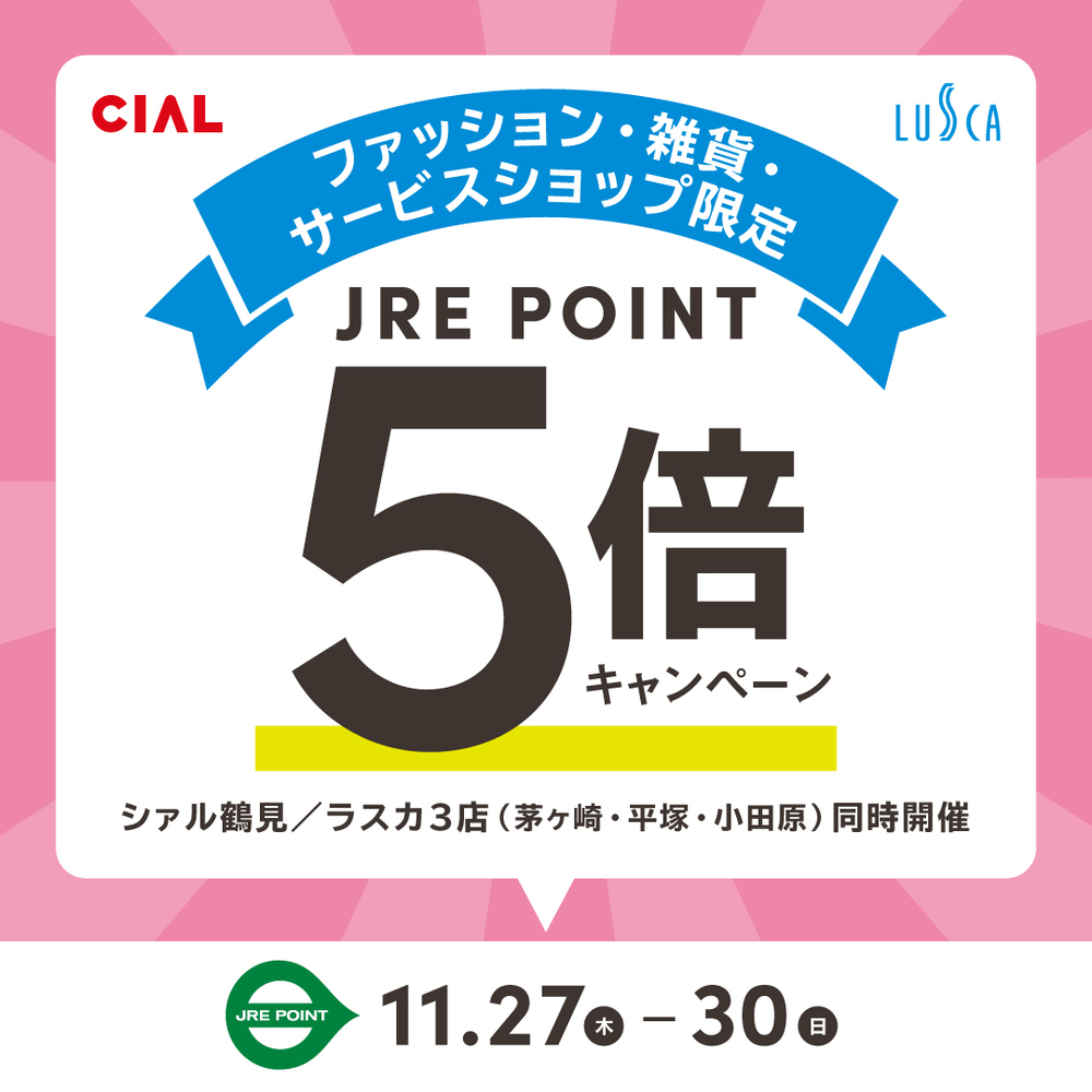 11/27(木)~11/30(日)ファッション・雑貨・サービスショップ限定!JRE POINT5倍キャンペーン!
