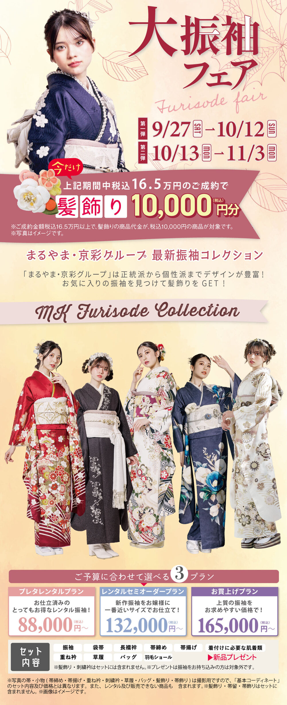 大振袖フェアでは最新コレクションからレンタル振袖、新作振袖まで勢ぞろい!