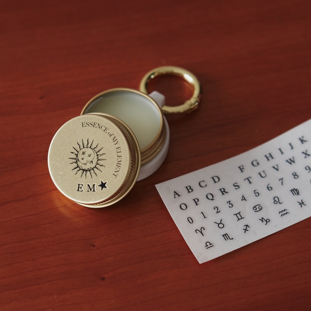 占星術や12星座のモチーフがデザインされた缶入りのマルチバーム。リング付きのケースに入れてバッグに添えれば、どこへでも連れていけるお守りのような存在に。