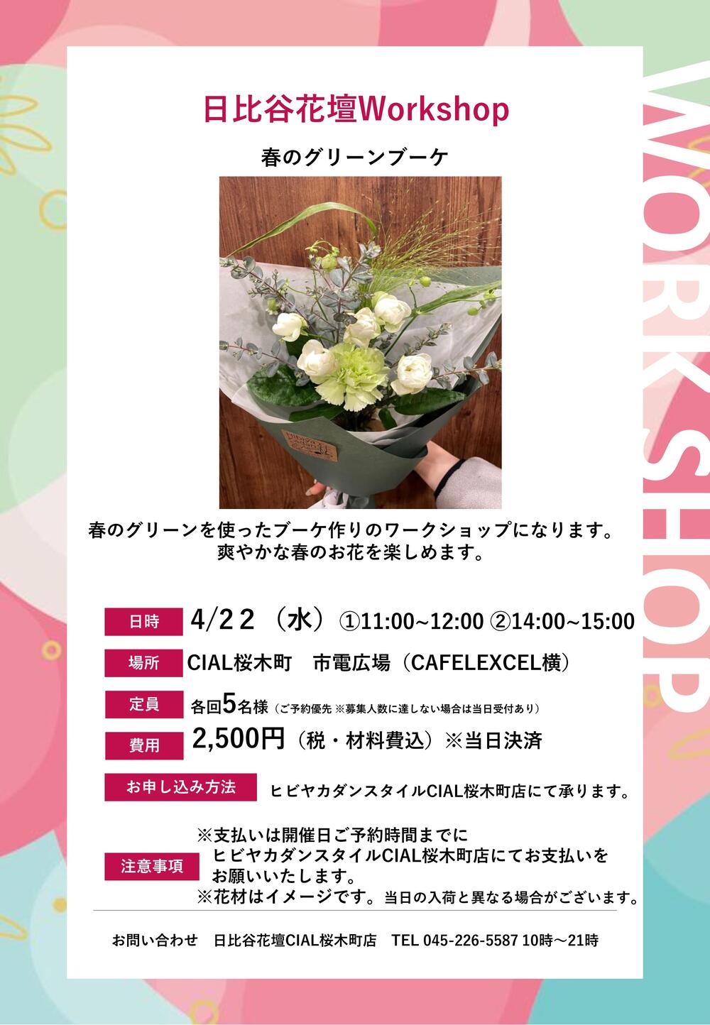 お問い合わせ:日比谷花壇CIAL桜木町店 TEL 045-226-5587 10時~21時