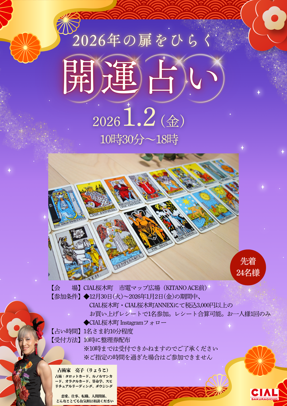 NEWS & EVENT ニュース&イベント HOME ニュース&イベント すべて ニュース イベント ~2026年の扉をひらく~開運占い開催中! 2026-01-02~2026-01-02 MORE MORE ~2026年の扉をひらく~開運占い開催中! 2026-01-02~2026-01-02 MORE