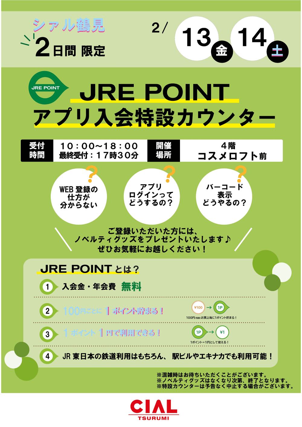 シァル鶴見4Fコスメロフト前イベントスペースに、JRE POINTアプリ入会特設カウンターを設置します♪