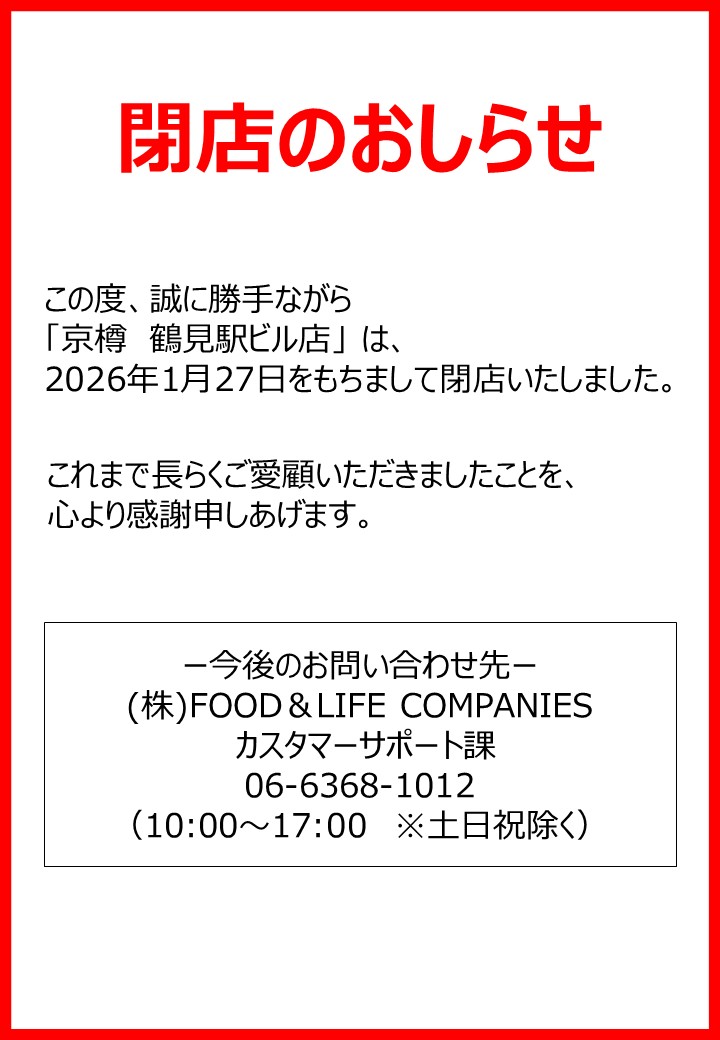 【閉店のお知らせ】京樽 シァル鶴見店 営業終了について
