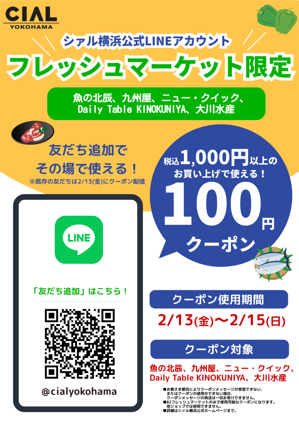 シァル横浜公式LINEアカウント B2フレッシュマーケット限定!LINE100円クーポン