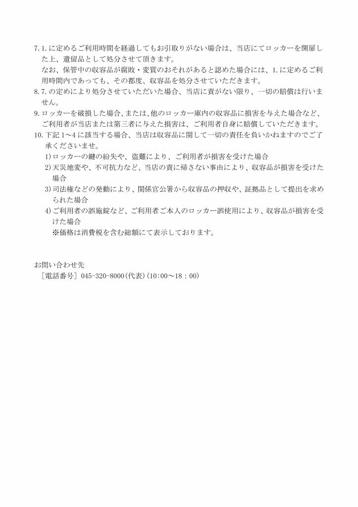 NEWS & EVENT ニュース&イベント HOME ニュース&イベント B2 冷蔵ロッカー使用約款 2025.04.01 開催期間:- B2 冷蔵ロッカー使用約款 平素より、シァル横浜をご利用いただきまして誠にありがとうございます。 B2冷蔵ロッカーご利用の際は下記約款をご確認の上、ご使用くださいませ。 画像を大きく見る 前の記事へ 次の記事へ 一覧に戻る