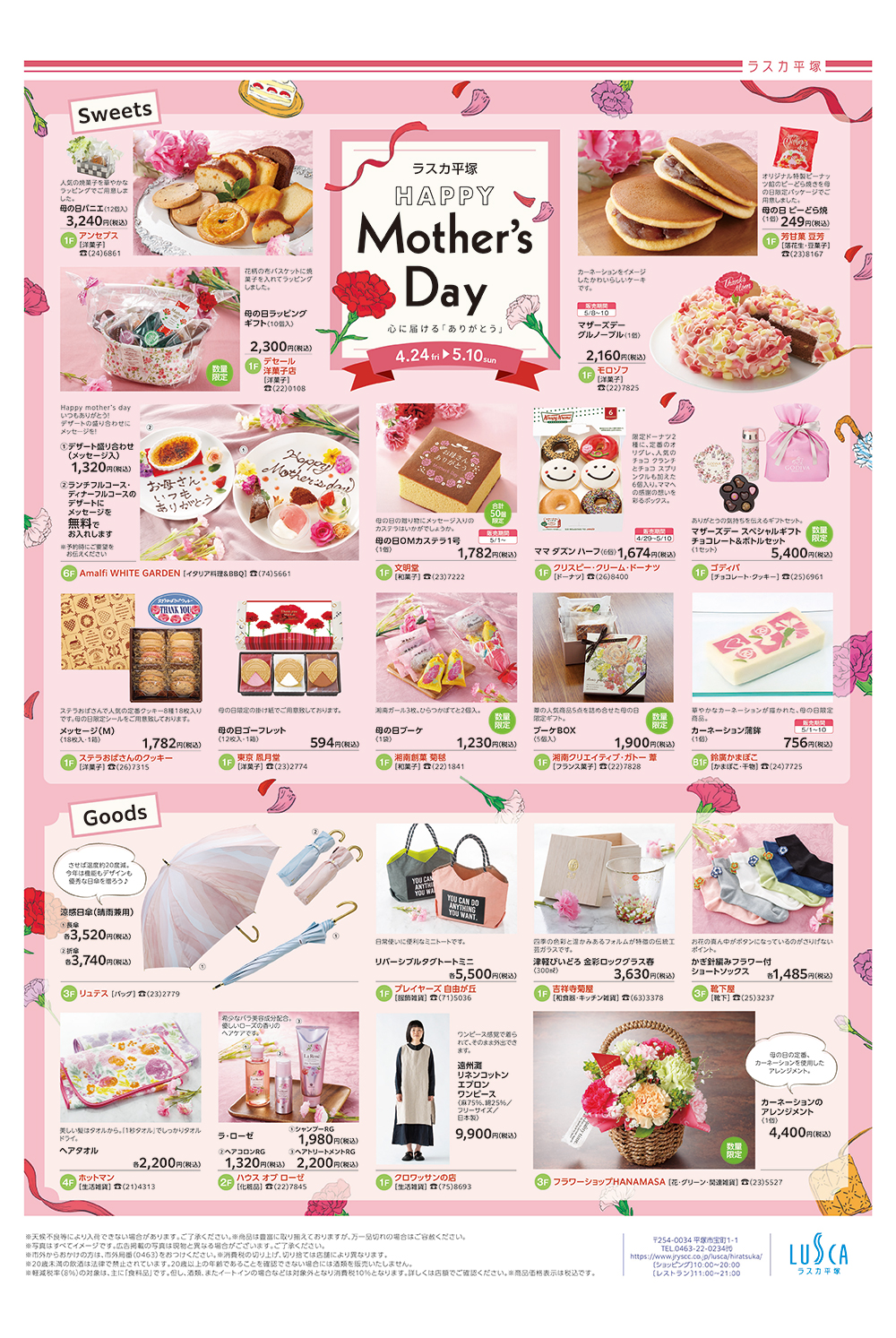 HOMEニュース&イベントMother’s Day🌸 NEWS & EVENT 2026.04.24 開催期間:2026.04.24~2026.05.10 Mother’s Day🌸 5月10日(日)は母の日です🌸 ラスカ平塚では、贈り物にぴったりなスイーツ・雑貨等を取り揃えております♪ この機会に、ぜひお越しくださいませ。 詳しくはこちら(PDF) 前の記事へ 一覧に戻る