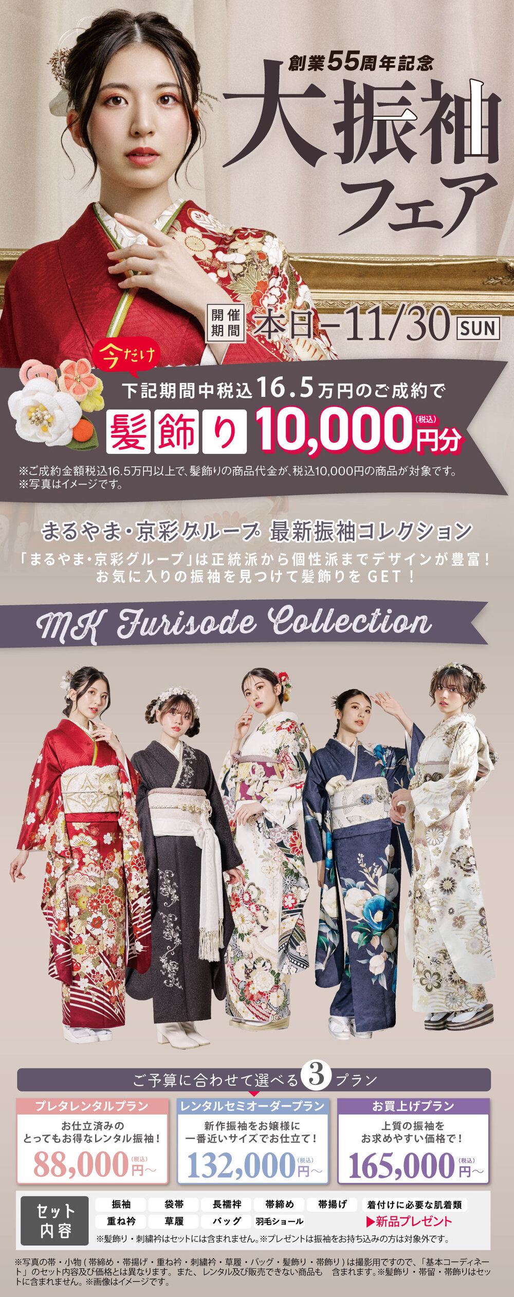きもの京彩振袖イベント創業55周年記念「大振袖フェア」本日から11/30(日)まで開催中!
