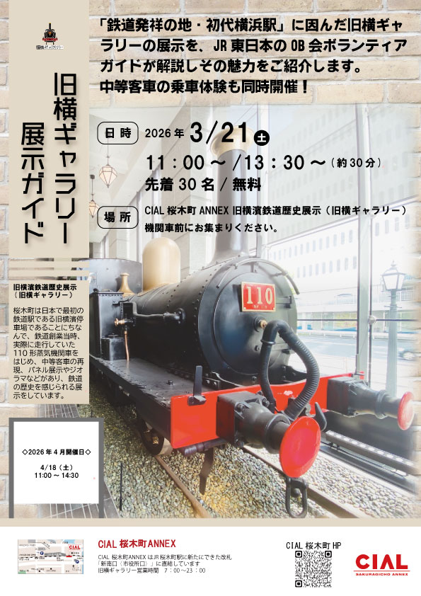 内容 「鉄道発祥の地・初代横浜駅」にちなんだ旧横ギャラリーの展示を、JR 東日本のOB 会ボランティアガイドが解説しその魅力をご紹介します!
