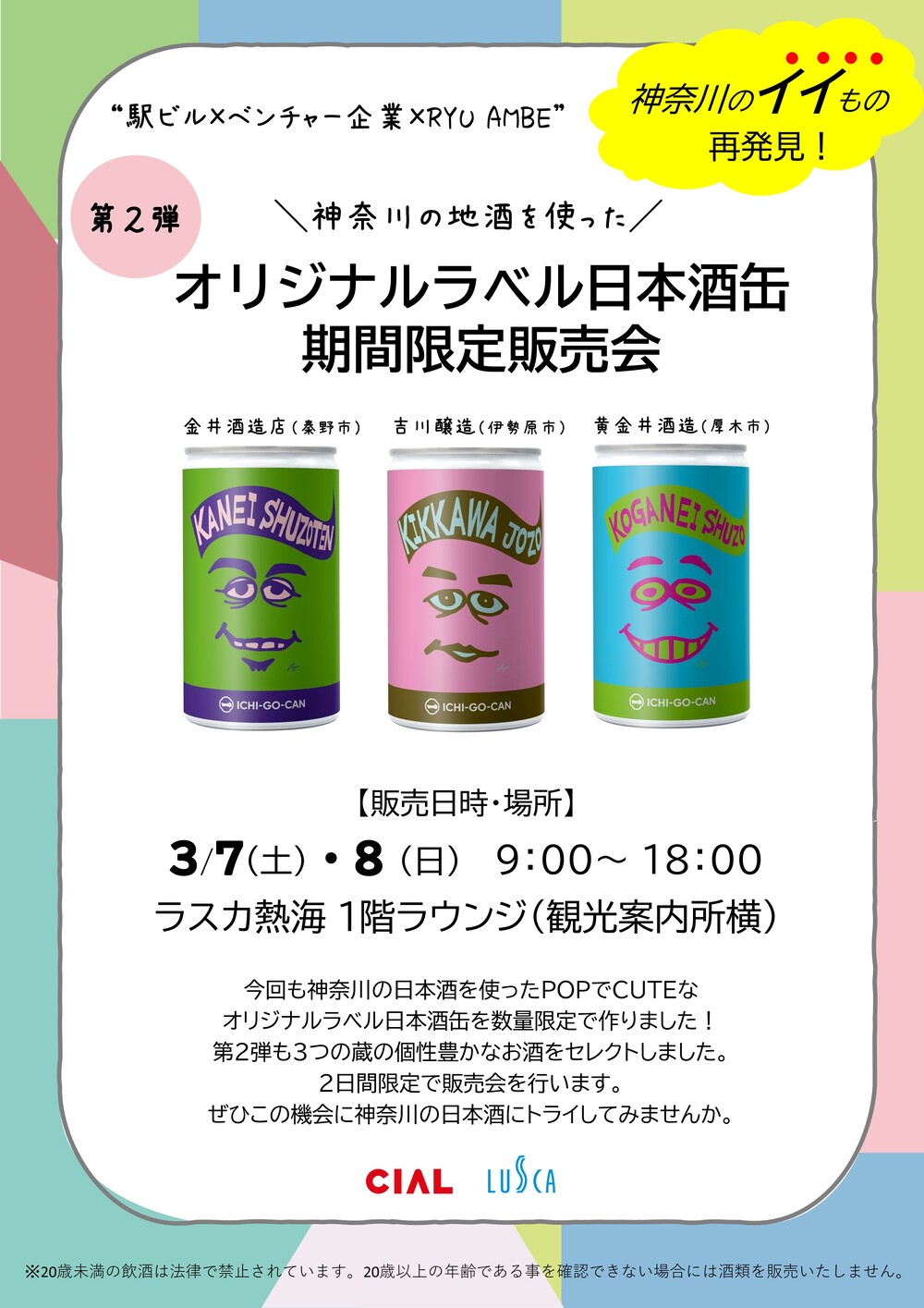 12月に発売した駅ビル(CIAL・LUSCA)×ベンチャー企業×アーティスト”RYU AMBE”による神奈川のお酒を使った「第2弾オリジナルラベル日本酒缶」を数量限定販売します。