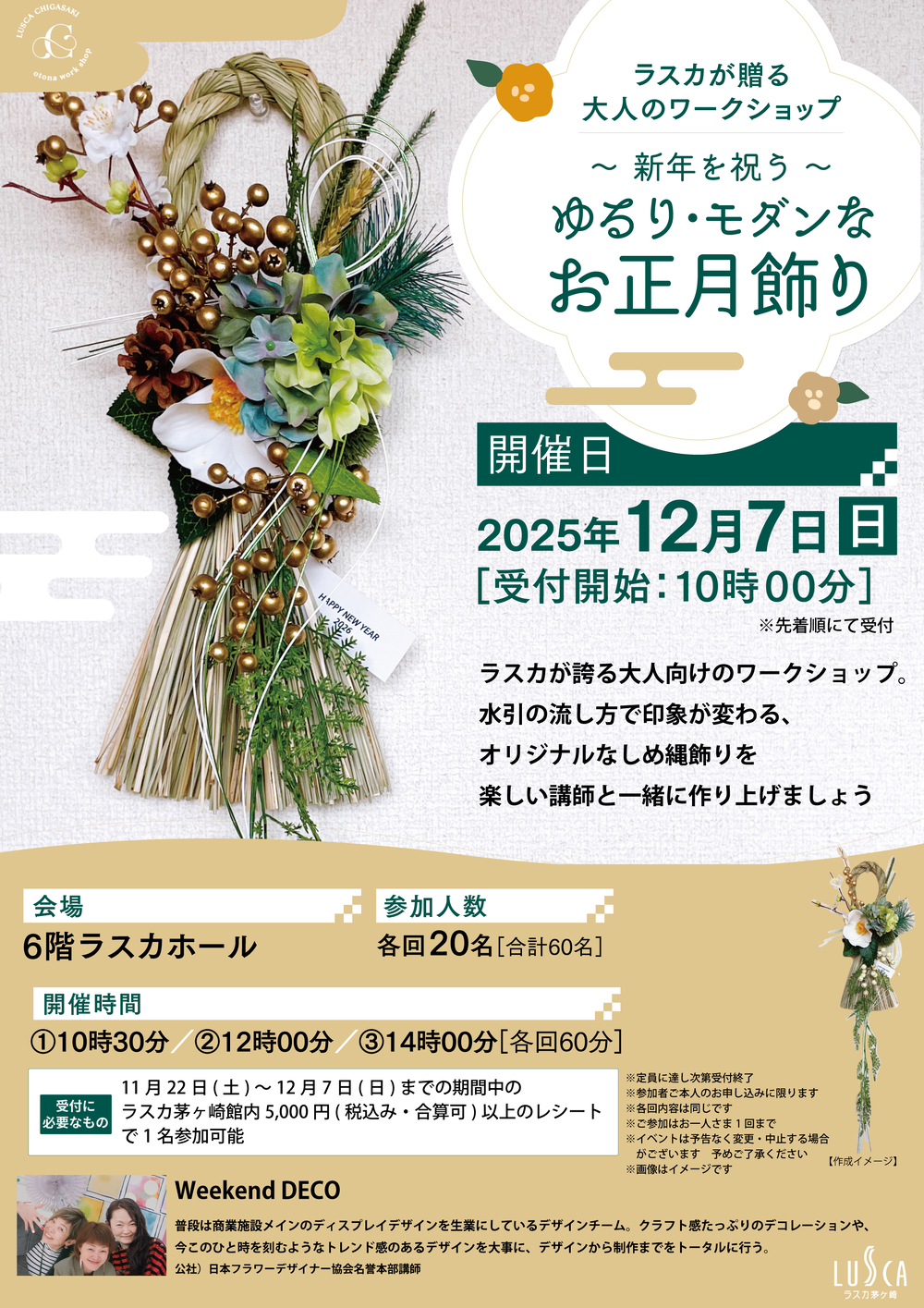 水引の流し方で印象が変わる、オリジナルなしめ縄飾りを楽しい講師と一緒に作りあげましょう!