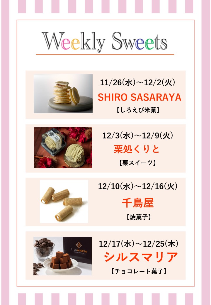 1週間ごとに出店店舗が変わる“Weekly Sweets”のスケジュール!