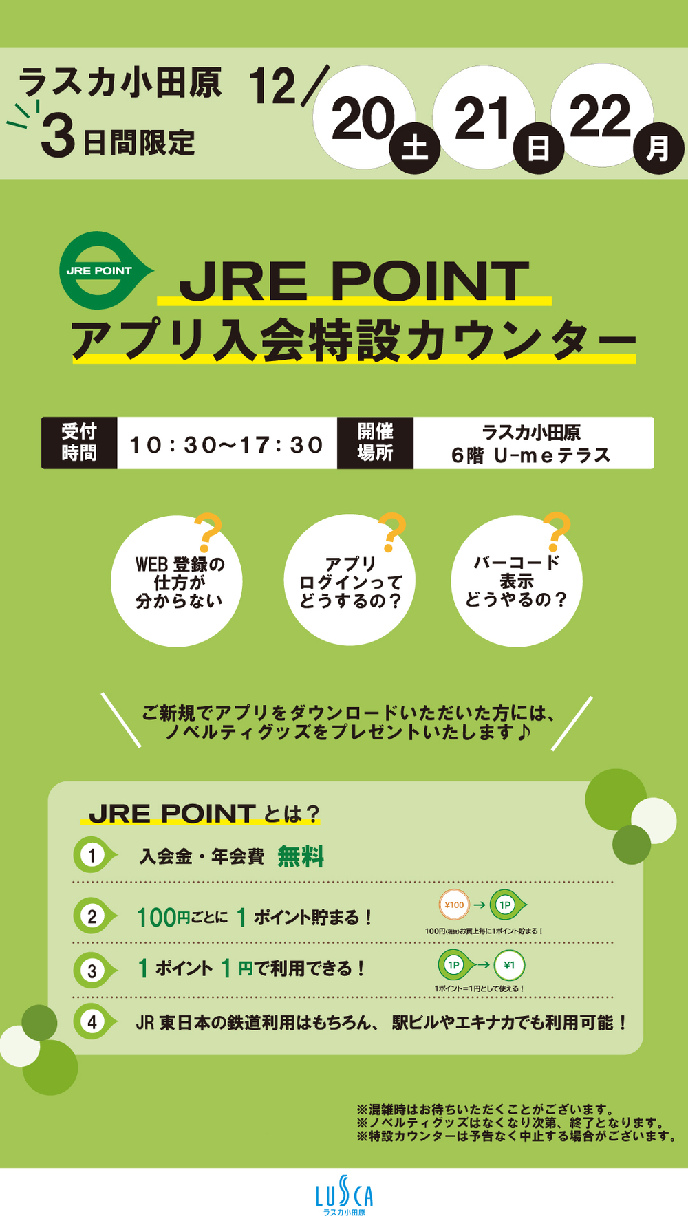 12月20日(土)・21日(日)・22日(月)JRE POINTアプリ入会特設カウンター
