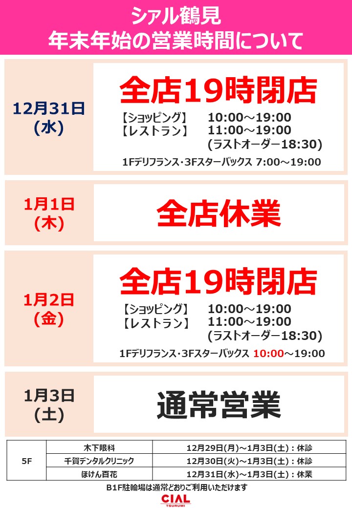 いつもシァル鶴見をご利用いただき、誠にありがとうございます。