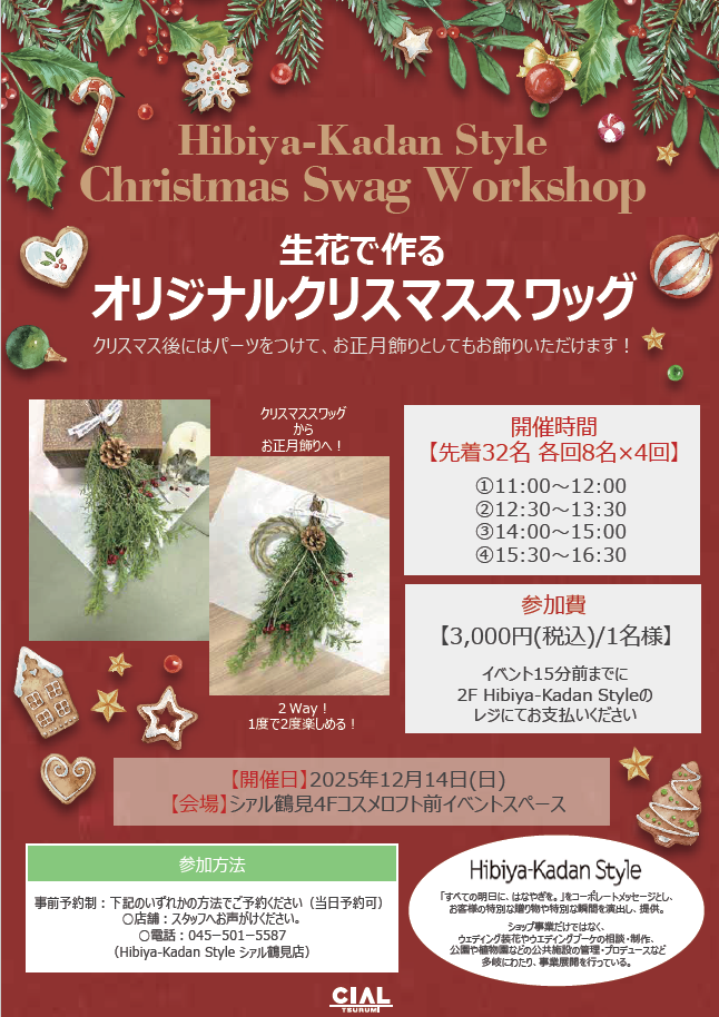 【Hibiya-Kadan Style】 生花で作る オリジナルクリスマススワッグ ワークショップ