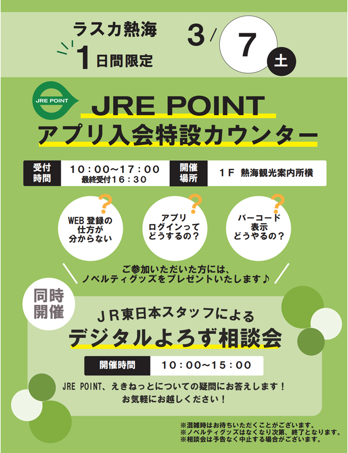 【ラスカ熱海】JRE POINTアプリ入会特設カウンター!