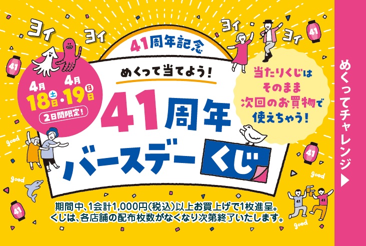 【41周年バースデーくじ】お買物券対象外ショップのご案内 ※2026年4月18日現在