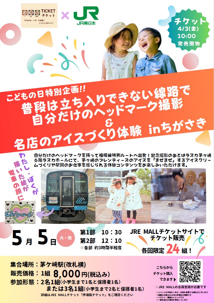 【こどもの日特別企画】5月5日(火・祝) ~普段は立入できない線路で自分だけのヘッドマーク撮影&名店のアイスづくり体験 inちがさき