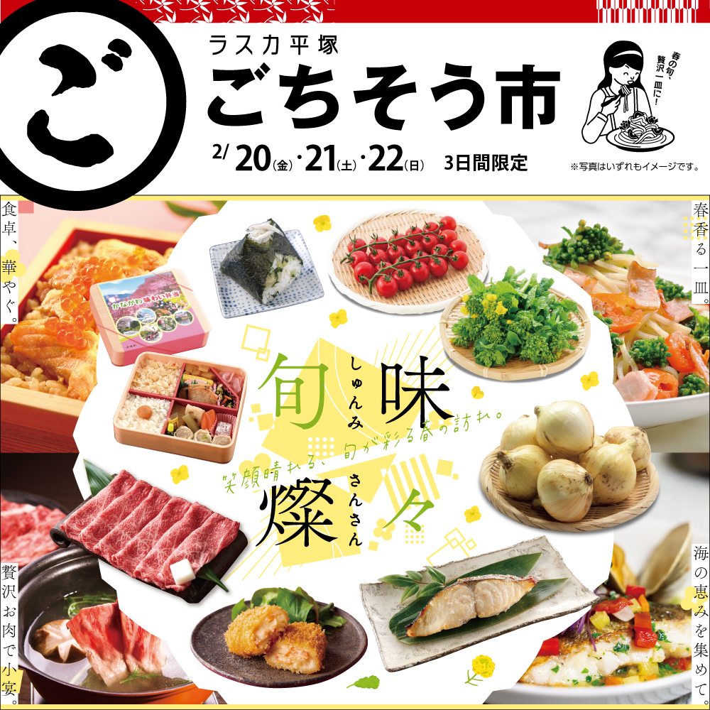 ラスカ平塚では、2/20(金)~22(日)まで食料品店にて「ごちそう市」を開催!