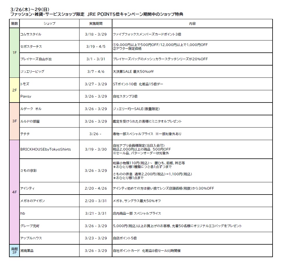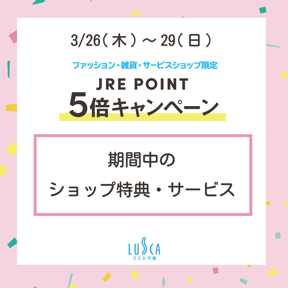 ファッション・雑貨・サービスショップ限定 JRE POINT5倍キャンペーン期間中、
