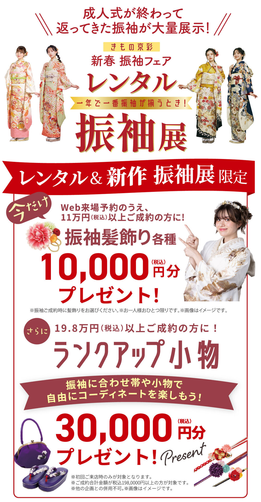 開催中、11万円(税込)以上ご成約の方に、振袖髪飾り10,000円(税込)分プレゼント!