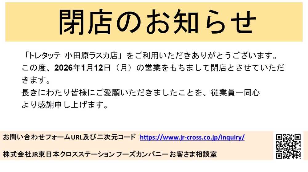 誠に勝手ながら、3F「トレタッテ」は2026年1月12日(月)をもって閉店いたしました。