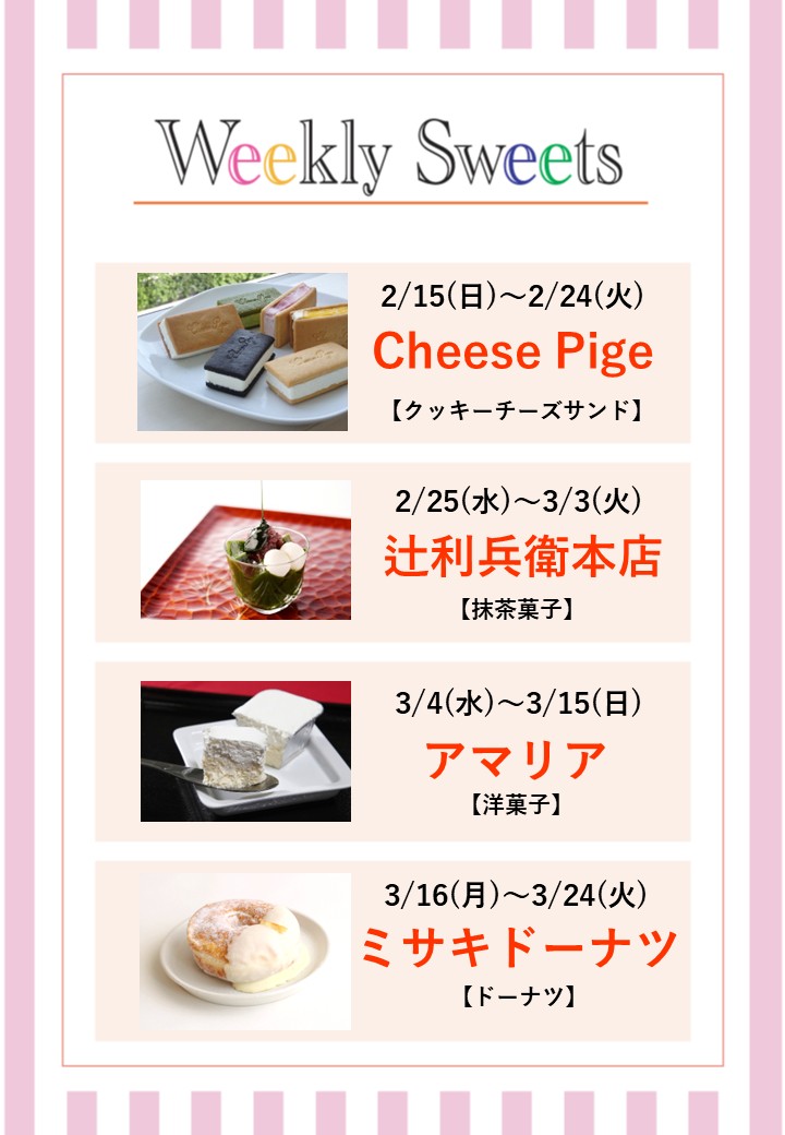 1週間ごとに出店店舗が変わる“Weekly Sweets”のスケジュール!