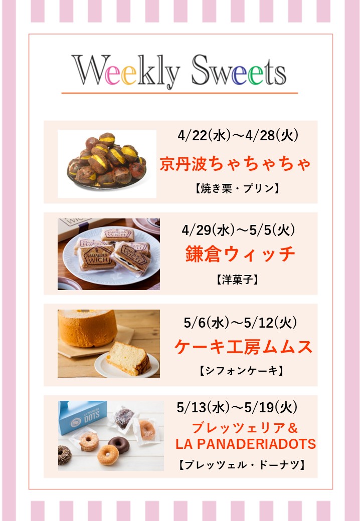 1週間ごとに出店店舗が変わる“Weekly Sweets”のスケジュール!